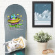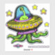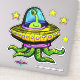 This super cute alien sticker has a happy smiling green alien looking out of a ufo as it floats through the stars, in outer space. Tentacles poke out of the flying saucer. This original art was hand drawn with ballpoint gel pen, then colored digitally.