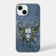 This horned alien war mask is a menacing sight to behold, with its skull-like appearance and sharp metal spikes protruding from its chin and gold spiral horns. Set against a gray grunge background, it's a fearsome symbol of power and strength, fit for only the most ruthless and skilled warriors.