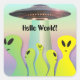 Greetings Earthlings! Whimsical aliens come to visit you from deep space in their flying saucer. This colorful design will look great on notebooks, laptops, water bottles and more. You can customize the text with your own message from these friendly space farers.