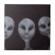 A color pencil drawing of three Alien Grey ETs against a starry black sky adorns this decorative tile!