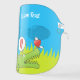 Alligator expressing his love for bird with crocodile tears. Blue sky and green grash background. Custom text.