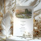 The coordinating back shows a closer poolside vignette with lounge chairs, stone decking, and lush plantings against a hazy mountain backdrop, paired with a “Finer Details” heading for your extra information. Clean serif typography and subtle script accents sit in generous white space beneath the artwork, keeping the overall look airy, modern, and elegant. All wording is fully customizable, making this suite perfect for Big Sur celebrations, coastal resort weddings, winery weekends, or any scenic mountain destination event.