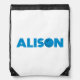 The name Alison with the letter O as a bowling ball. colours can be changed.