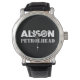 The name Alison with the letter O as a wheel. For a car / bike fanatic, mechanic or driver. The colours can be changed.