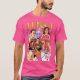My 11 yo wore adult XL (5’7” 165#). The 8yo is small framed. She wore adult small and tied it in the back. Grandma wore adult large with long sleeve shirt underneath. Tall girl adult medium. Dark haired male adult large. Good quality dark Heather gray, Gildan brand shirt. -it was next up from basic choice and cost about $20 per shirt. Not too thick or thin. Washed and dried well, no major shrinkage. Not see-through. Can wear a bra under it fine. Screen print is just as shown and well done, front and back.