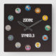 All 12 Zodiac Symbols with Star Field Square Wall Clock