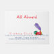 Welcome your model train business guests with this All aboard the Choo Choo train running down the tracks Door Mat. Clickety clack it’s moving fast. A colourful illustrated red and green steam locomotive with purple steam billowing from it’s smoke stack. Add your information in the fields provided.
