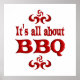 Share your love for barbequing with this fun red design with flourishes and the words - It's all about BBQ.