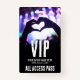 Concert Ticket All Access Special Event VIP Badge. Great for concerts, large special events like conferences, speakers, and can even work for a birthday party. Features a cute play on a concert venue with someone holding their hands into a heart shadow. In the background is a mix of purple, blue, and white coloring from the concert lights. At bottom is a bold font with VIP, the event name, date, and 'All Access Pass'. You can change all of the text information and font colors of this badge. You can even use a different photo if you want, but it may not fade to black as well at bottom.