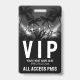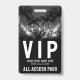 This VIP badge features a bold black and white design with grayscale artwork, perfect for an outdoor concert or a party with a Coachella vibe. Along the top, silhouettes of palm trees stretch across a moody grayscale sky, giving the design a cool and modern festival feel. The image fades into solid black at the bottom, where the event name, date, and “All Access Pass” are displayed in a clean, bold white sans serif font. “VIP” is shown at the top in the same simple style for a sleek, minimalist look.