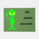 This funny green Alien doormat says it all! "All Aliens Welcome!"