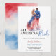 This design features elegant 4th of July "All American Bride" Bridal Shower Invitation featuring a romantic watercolor illustration of a bride and groom in red, white, and blue attire. Perfect for a 4th of July bridal shower, military bride celebration, patriotic wedding shower, or Americana-themed bachelorette event. Personalize it with your event details to make it completely yours!
