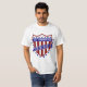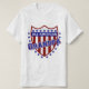 "This Patriotic "All American" design tells it all. Design features a red, white and blue shield, blue stars and the words "Grandpa" outlined in white and red placed in the center of the shield."