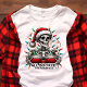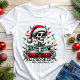 Get into the holiday spirit with this unique "All Booked for Christmas" design, featuring a festive skeleton decked out in Santa gear and surrounded by colorful Christmas lights. Perfect for those who love the spooky season and holiday cheer combined, this shirt adds a touch of gothic fun to your winter wardrobe. Whether you're cozying up with a book or embracing the 'booked' holiday season vibes, this design makes a bold statement. Ideal for Christmas parties, book lovers, and fans of all things spooky yet festive!