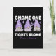 All Cancer Awareness design featuring lavender colored gnomes with the words "Gnome one fights Alone". For anyone fighting cancer. Can also be worn during Cancer Awareness Month.