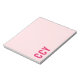 This fun notepad features your initials or name on the side of the pad. Add your personalization using the template form. To change the font, style, color or layout, select the option to "customize further".