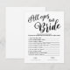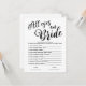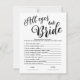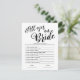 All Eyes on the Bride is a fun and interactive bridal shower game card designed to see how well guests know the bride-to-be. Perfect for bridal showers, bachelorette parties, and engagement celebrations, this game brings laughter and friendly competition to any gathering. Guests answer a series of questions about the bride, from her favorites to memorable moments, making it a heartfelt and entertaining activity. The beautifully designed card layout is easy to read and simple to fill out, suitable for guests of all ages. It requires no complicated setup, making it a stress-free addition to your party planning. Simply hand out the cards, set a time limit, and reveal the answers as everyone enjoys the fun surprises. Add this charming and engaging game to your celebration to create lasting memories for the bride and her loved ones.