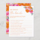 Add fun to your event with this All Eyes on the Bride bridal shower game, featuring vibrant pink and orange floral artwork and a playful design. Perfect for bridal showers, wedding showers, or bachelorette parties, this bright, garden-inspired game tests guests' memory of what the bride is wearing. A fun, interactive activity for a summer or floral-themed celebration.