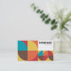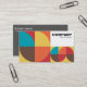 A business card template with an attractive geometric layout in an attractive palette of colors. Company details on the front with name and contact details on the back in white on a contrasting gray background. Can be adapted to a variety of businesses and other uses. Can also be changed for use more as a profile card by removing or swapping the company and personal name details.