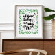 All good things are wild and free. Design features the quote from Thoreau in crisp black brushstroke text surrounded by jungle green botanical leaves in watercolor.