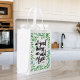 I own a lot of reusable grocery bags, but this one holds its box shape and simply stands up on its own even if there is nothing in it. Its stiffer than your regular reusable bag too, and the material is water resistant. I poured water on the exterior and it didn't penetrate inside to the other side. I'm buying a couple more. Wish I knew how durable these bags were or I would have purchased a few more with my initial order. I also like how it folds and buttons up when not in use, making it easy to put into a handbag or luggage. I haven't used this bag yet, as I purchased it for travel use, like when you're at the airport and need to small sturdy bag to place any airport purchases in, like food, souvenirs etc. I can tell you when you first see this bag, it looks very cheap, but after closer inspection of the material and the seams its a very sturdy reusable bag. I tested it out by putting some really heavy objects inside and I could not observe any stress to the bag at all. Another thing I like about it, is the fact the medium size that this is makes it easy to just carry it in your hand without the bottom of the bag scraping the ground, like most other bags do when you're short. That alone, deserves 5 stars. I just wish there were more colors to choose from! The PDX Airport Carpet printing looks just like the photo, and using this bag during travel might be a conversation piece when/if a native from Oregon happens to see it.