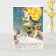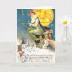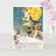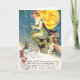 Vintage image of a witch on a broomstick halloween postcard.
