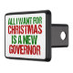 All I Want for Christmas is a New Governor Funny Political design. Anti Greg Abbott democrat humor holiday trailer hitch cover in green and red writing for a Texas voter.