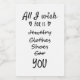 I don’t need jewelry, clothes, shoes and cars. All I wish for is You. Unique and funny design. A perfect match for clothing, T-shirts, accessories and other items. Great gift idea.