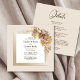 Plain white envelopes are included with paper invitations and will come to fit the invitation size you select. If you don’t need the envelopes, you may choose to not receive them by selecting the dropdown below "Envelopes" and choosing "None." If you’d like to have a design on your envelopes, you can browse all of these available envelopes to find the design that complements your All In One Elegant Fall Floral Wedding Invitation.