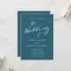 All in One Modern Calligraphy Teal Blue Wedding Invitation