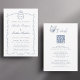 Elegant dusty blue French frame wedding invitation with details on the back, perfect for a modern classic or romantic vintage wedding. For more advanced customization of this design, please click the DESIGN TOOL BUTTON above!
