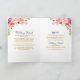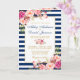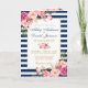 Elegant Watercolor Pink Blush Floral gold frame & gold script All-In-One Wedding Invitation with Blue and White Stripes.