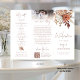 All in One Rust Terracotta Florals Photo Overlay Brown Writing Program Menu Z. Say hello to the ultimate wedding day essential! This elegant and thoughtfully designed Z-fold brochure is more than just a program – it's a fully personalized keepsake for each guest. Thanks to its unique Z-shape fold, the final panel displays a large table number, making it perfect too for standing upright on your reception tables – no need for separate table number cards! Each guest can have a copy with their particular table number on it. It also includes your Order of the Day with icons so they can see at a glance what's happening, as well as ceremony order and wedding party names. Include your love story for some heartfelt aww moments. This practical keepsake also includes your menu and a “share the love” QR code for guests to upload their photos of the day. Simply update the sample URL to that of your site where photos are to be uploaded to and the QR code will automatically be generated. Stylish, practical, and meaningful, these brochures help your guests feel included and informed – while doubling as decor and a lovely memento of your day.