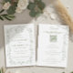 All in One Sage Green French Floral w QR Wedding Foil Invitation