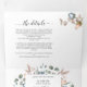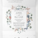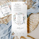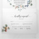 Lay out all the details for your wedding with this all in one elegant floral invitation, no need for extra insert cards or rsvp! Middle inner section showcasing your invitation details, while on the top section you can add any reception, accommodation, transportation, gifts, website details you like. Below guests can easily cut away RSVP postcard and place in the mail! Edit information on text boxes or select customize to make adjustments on editing screen. Exquisite elegant watercolor hand painted floral details in all sections with flowers and foliage in mauve gray, butter cream, dusty blue, blush, peach, dusty rose and green tones. Gorgeous pale pink foliage and Eucalyptus greenery. Part of our "Blissful wedding and events collection". Also available with couple's photograph in the back.