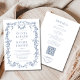 Elevate your wedding stationery with this all-in-one Victorian dusty blue invitation, combining timeless elegance with modern convenience. Featuring a delicate floral motif, graceful script calligraphy, and a refined monogram, this folded design includes your invitation, RSVP details, and QR code in one cohesive piece. Ideal for spring, summer, or fall weddings with a romantic vintage or French-inspired theme.