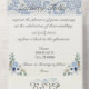 A beautiful blend of floral and rustic for a dark blue and pale blue color scheme with touches of gold for a bit of elegance.