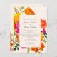 Embrace the charm of nature with this enchanting wedding announcement, adorned with a lively arrangement of whimsical poppies and ranunculus flowers. The rich tapestry of orange, coral, and fuchsia blooms, intertwined with verdant foliage, brings a delightful burst of color to your special occasion. Designed to capture the essence of a sun-drenched garden, this invitation sets a romantic and joyful atmosphere for your upcoming marriage. Let these exquisite floral elements herald the beginning of your forever.