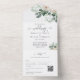 All Inclusive White Roses Sage Leaves Wedding RSVP All In One Invitation