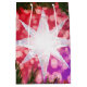 A bright start hanging in a Christmas tree against a sparkling bokeh background in all the colors of the rainbow.
