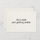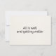 This affirmation card features a simple positive quote on it - 'All is well and getting weller'. You can edit this text and add any phrase you want. Edit a card, add to cart, and edit again to make a deck of inspiring cards. In the background is a subtle photo of paper texture - which you can replace with a photo of your choice. This is a great tool for enhancing your spiritual focus - meditate upon the phrase, or put it around your home and be reminded daily of your soul's purpose. ••• For more spiritual stationery, visit my store Zazzle.com/In_The_Vortex