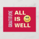 Our All Is Well GRATITUDE Postcards are perfect for sending a quick handwritten note to friends and family who are no a gratitude journey. Design features bold text with iconic smiley face. Volume discounts available!