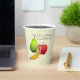 Yummy! These cool paper cups feature an original digital painting by Leslie Sigal Javorek that's retro-stylized, with a trio of fruit "stickers" set against an egg-shell colored vinyl tablecloth and the caption, "All Life's a Picnic to be Enjoyed!"