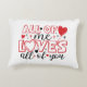 For a Valentine's day gift, someone will love to receive this beautiful white pillow with red text "All of me loves all of you"