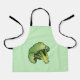 Great color and even though I ordered the kid size, it covers well enough to use during the holidays. I am not a big woman and prefer a shorter apron. I stand 5"6" and the length of the garment goes to mid-thigh. The tie straps fit well at my waist and even though there is no neck strap adjustment, the opening is plenty big enough. I am happy with the size and fit. I am sharing my apron with my 10 year old grandson, too! The color is vibrant and looks good, as shown on the website. The stitching looks strong and reinforced. Photographed is front side and back side of the apron, reinforced straps and coloring. My phone camera may not be the best at showing the details.