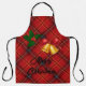 Great color and even though I ordered the kid size, it covers well enough to use during the holidays. I am not a big woman and prefer a shorter apron. I stand 5"6" and the length of the garment goes to mid-thigh. The tie straps fit well at my waist and even though there is no neck strap adjustment, the opening is plenty big enough. I am happy with the size and fit. I am sharing my apron with my 10 year old grandson, too! The color is vibrant and looks good, as shown on the website. The stitching looks strong and reinforced. Photographed is front side and back side of the apron, reinforced straps and coloring. My phone camera may not be the best at showing the details.
