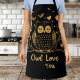 All-Over Print Apron, Owl design in black and gold.