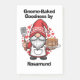 Gnomes know how to cook great food, cooking and eating are their favorite pastime. In one hand this gnome holds a silver spatula with a wooden handle, and in the other, he holds a white plate stacked with several pancakes, topped with syrup and a pat of butter.