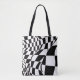 It's not your standard checkered flag -- but it's a winner! Graphic black and white "checks" have been stretched and warped, undulated and skewed, giving a feeling of depth and movement to this marvelous design. The fact that it is a little reminiscent of the checkered flag makes this graphic tote an excellent choice for your favorite racing enthusiast's birthday!