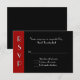 All purpose event RSVP response card, done in a an Art Deco style, with a red and black background, with RSVP, in white, running vertical down the left side. Text in white is fully customizable to suit your event needs. Great for weddings, anniversaries, and other special occasion events.